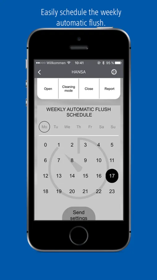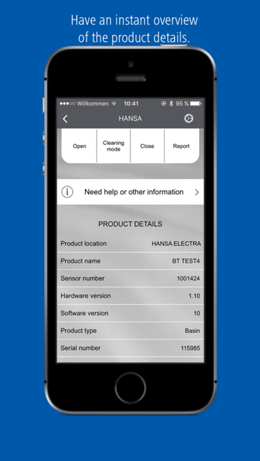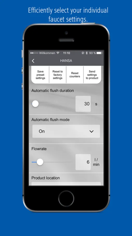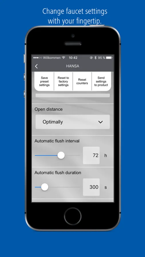 The HANSA App is suitable for sanitary installers and building technicians in the public and semi-public environments. In this sector a high degree of efficiency and hygiene requirements of electronic fittings are necessary. The functions of the HANSA App such as cleaning mode, flush mode or sensor sensitivity are easily to adjust. Turn on the Bluetooth® wireless connection in your iPhone or iPad. The fittings are automatically searched for and listed. Select the preferred fitting and start the maintenance.