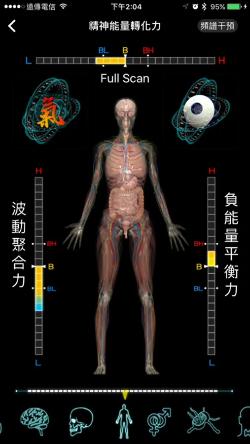 2. Spectrum Adjustment: Teach users to adjust the dielectric change of the meridian points by breathing training. There are five functions as following.
