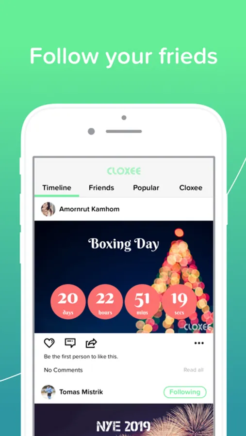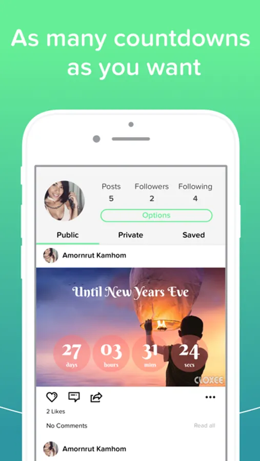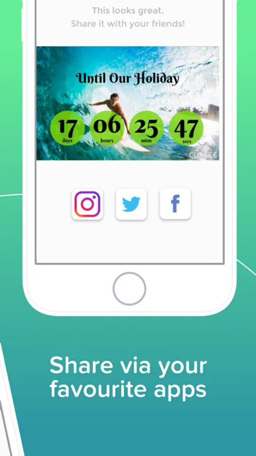 Cloxee countdowns can be shared on Instagram, Facebook and Twitter. You will also have them saved on your phone.