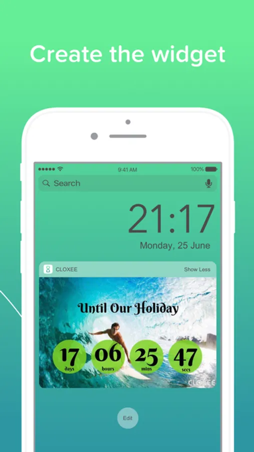 This is our favourite feature because no matter what kind of countdown you create, you can always check it via the widget. Cloxee's free countdown widget shows days, hours, minutes and seconds left in real time. This widget is going to show your timer exactly the way you have designed it in the app, with your background, your text and your countdown clock.