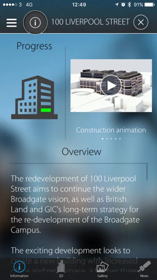 Find out what is going on behind the hoardings with this free interactive App which tells you all you need to know about construction works taking place at 100 Liverpool Street, Broadgate.