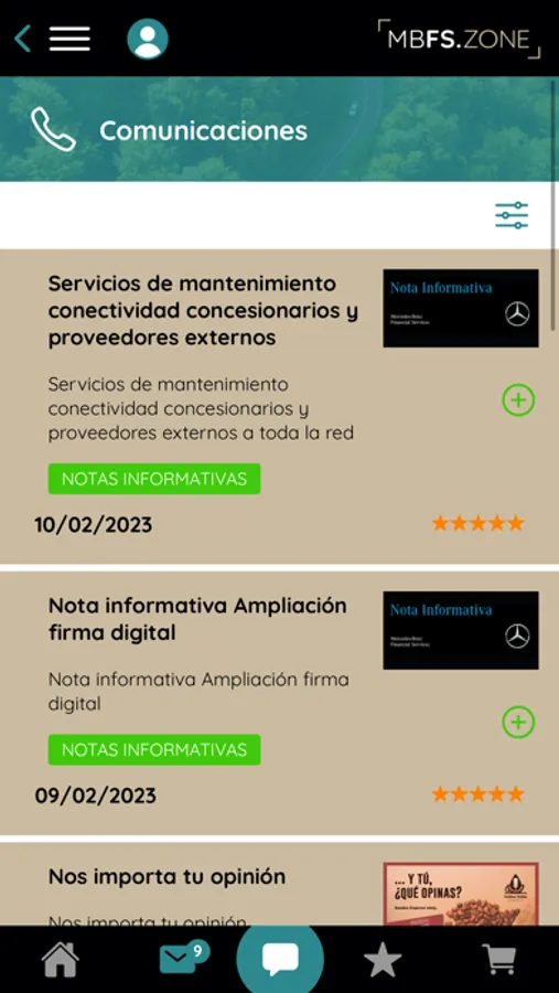 - Recibirás mensajes con la información relevante de MBFS para que estés al día de todas las acciones de tu Financiera de la Marca.
