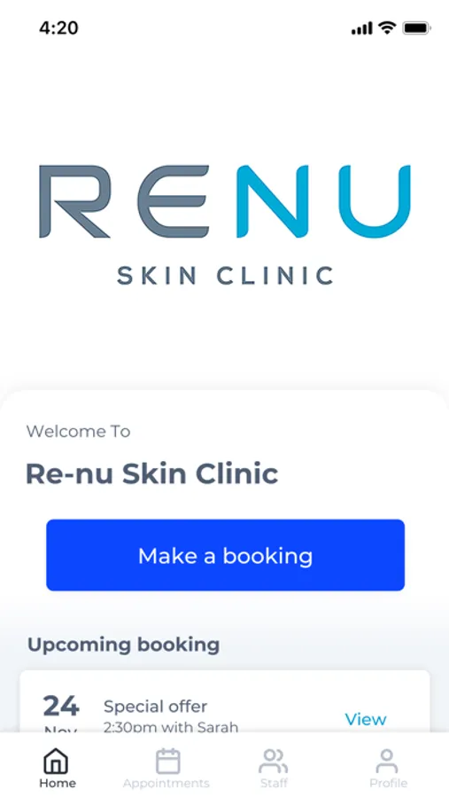 The Re-nu Skin Clinic app makes booking your appointments and managing your loyalty points even easier. You're just a few taps away from feeling good and looking great!