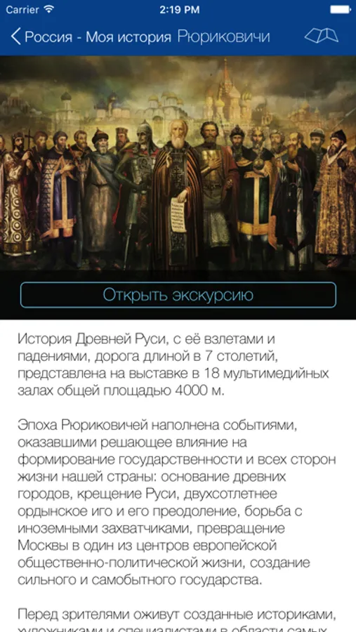 "Россия - Моя история" - мобильное приложение Исторического парка на ВДНХ в павильоне №57.