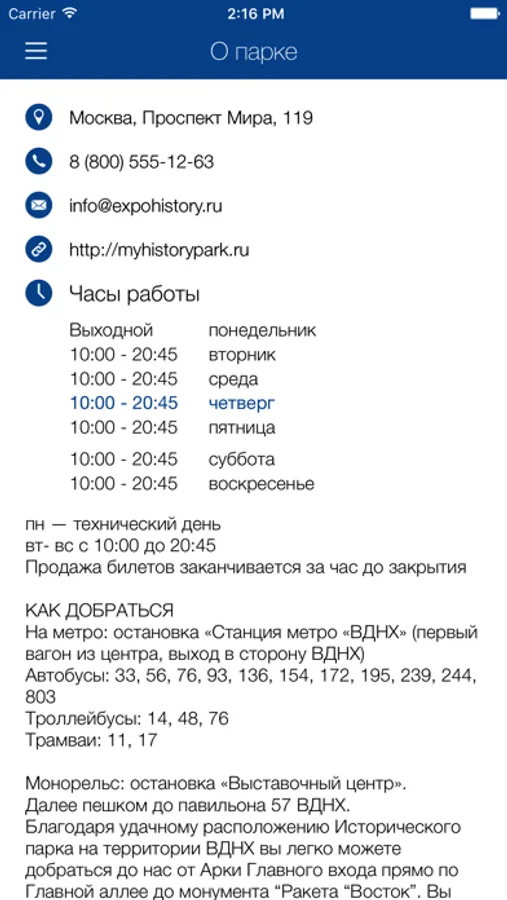 Еще одно преимущество приложения – возможность виртуально посетить любую экспозицию, даже не выходя из дома. В приложении хранится список всех экскурсий, доступных для просмотра в парке. Всегда можно ознакомиться с полным списком экспонатов, прослушать рассказы о них и почитать дополнительную информацию.