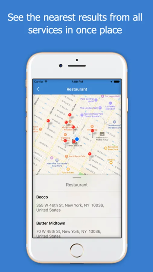 Nearby - Places Around Me is easy to use app which helps you find ATM, Bank, Gas Station, Restaurant, Bar, Cafe, Hospital, Hotel, Taxi, Movie Theatre, Beauty Salon, Wi-Fi spots or virtually anything near you.