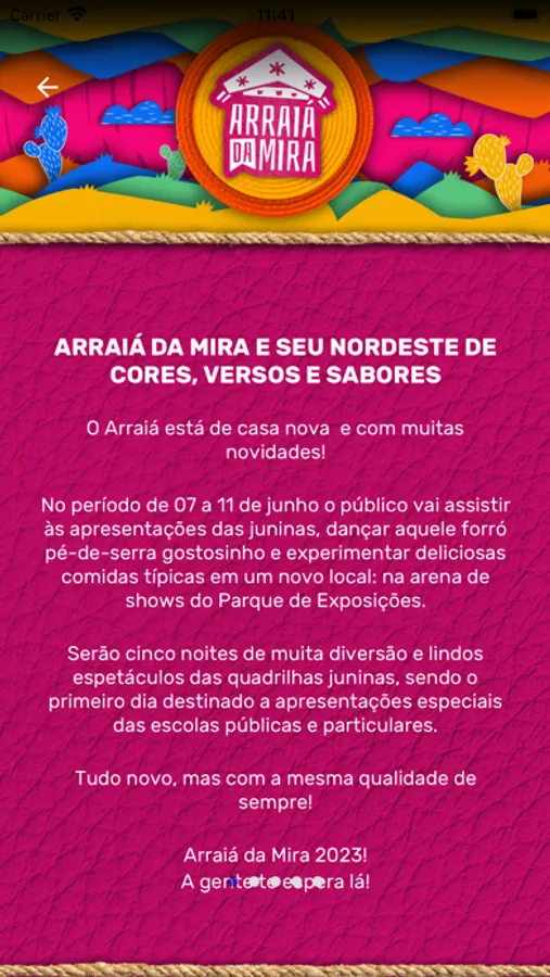 E você vai interagir ainda mais com essa festança, por meio do APP Arraiá da Mira, uma plataforma com toda a programação do arraial e um espaço especial para votação.