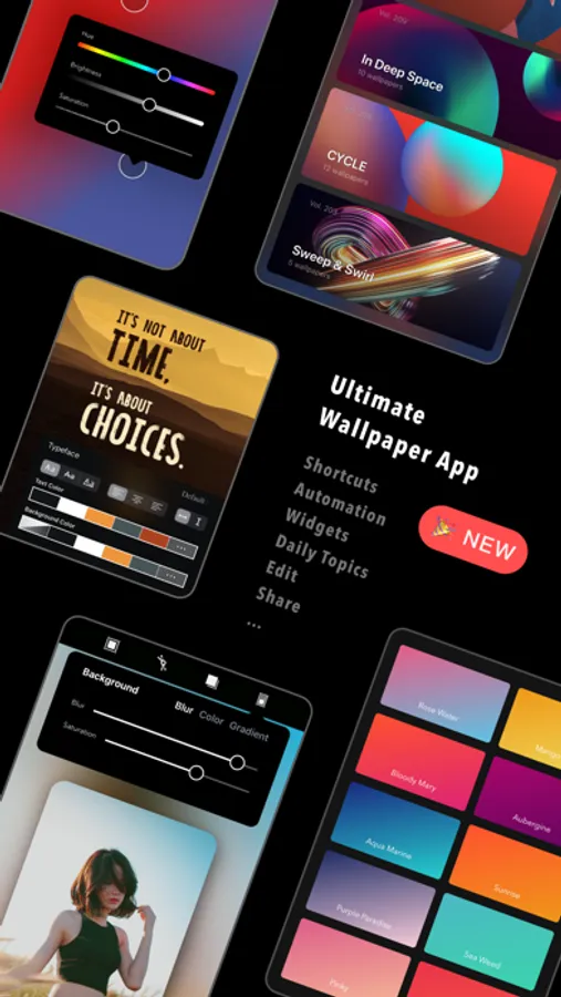 - Create text wallpapers with your favorite quotes for your lock screen.