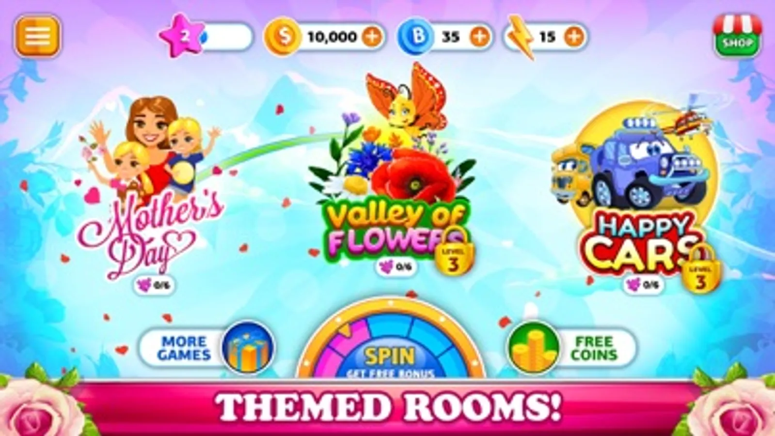 Save this amazing season in your heart and play this free game of bingo it anytime you want with the most incredible features in the market. Play offline in those moments while coming back home, play online and experience the real bingo live excitement; stress free guarantee, as the connection won’t get lost in the middle of a game. Our responsive & quick interface ensures a high quality gaming experience, with stunning Mother's Day animations, themed bingo cards, gifts, and much more surprises! Earn special trophies & medals as special achievements; with them, you’ll be able to unlock more skins & themes like Valley of Flowers, white carnations & many other funny animated bingo cards.