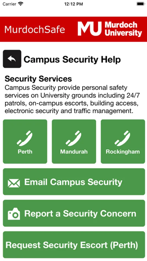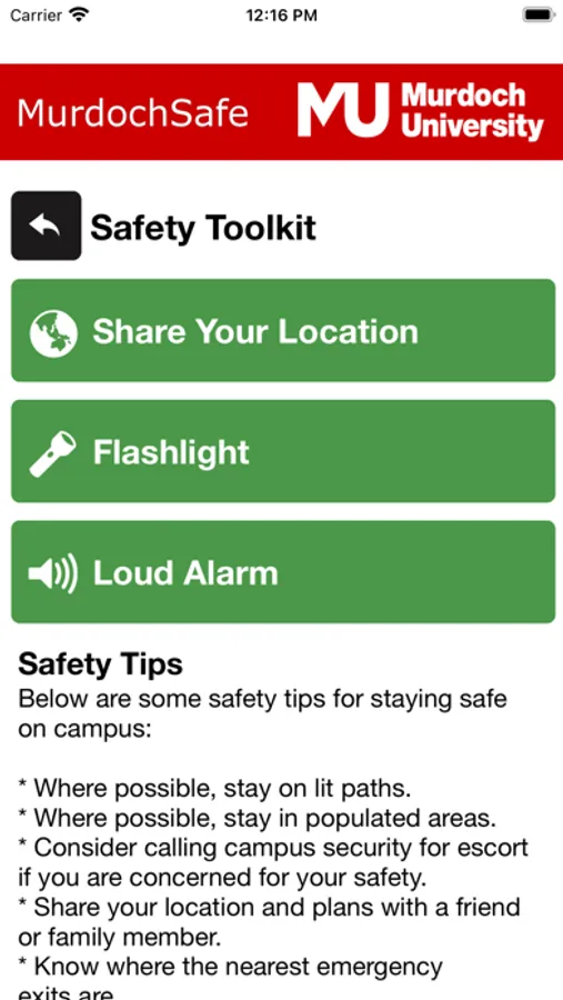 MurdochSafe is an essential tool to enhance your safety at Murdoch University. The app will send you important safety alerts and provide instant access to campus safety resources. MurdochSafe is the official mobile safety app of Murdoch University.