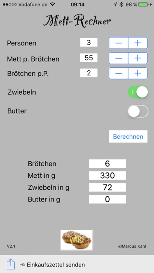 Ein kleines Berechnungstool um zu berechnen, wieviel Mett (Hackepeter) und Brötchen man für ein Frühstück mit den Kollegen braucht.