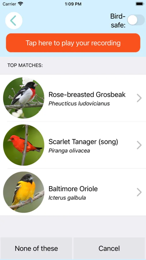 Heard a bird and want to know what it is? Just tap the red button to make a recording and ChirpOMatic will do the rest. The app will check your recording against a library of birds from North America and provide you with a match, along with a photo of the bird, and a clear cut description of the sound. If you don't have your phone with you, you can use your Apple Watch to record sounds for identification later.