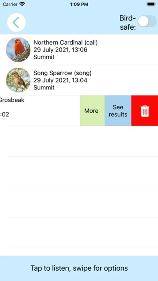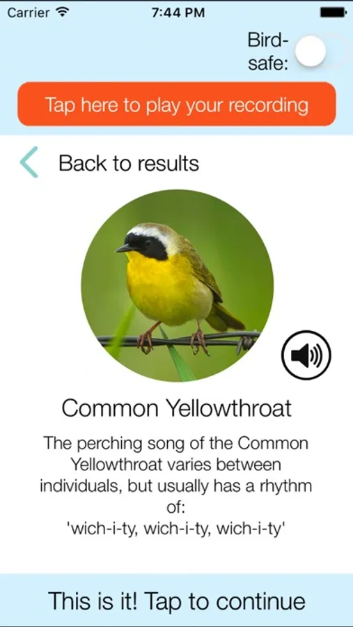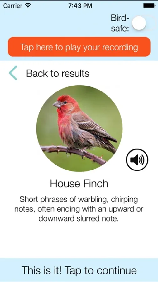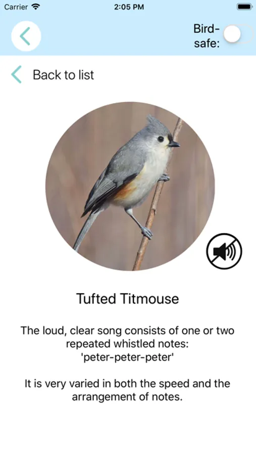• Recordings of bird songs disturb nesting birds, distracting them from the essential tasks of defending their territory and feeding their young. ChirpOMatic is the only bird sound app that is safe to use anywhere, at any time, because it's the only app with 'Bird-safe Mode'. When this is switched on, you have to hold the phone to your ear as though making a phone call in order to hear the sounds. This ensures that birds are not disturbed.
