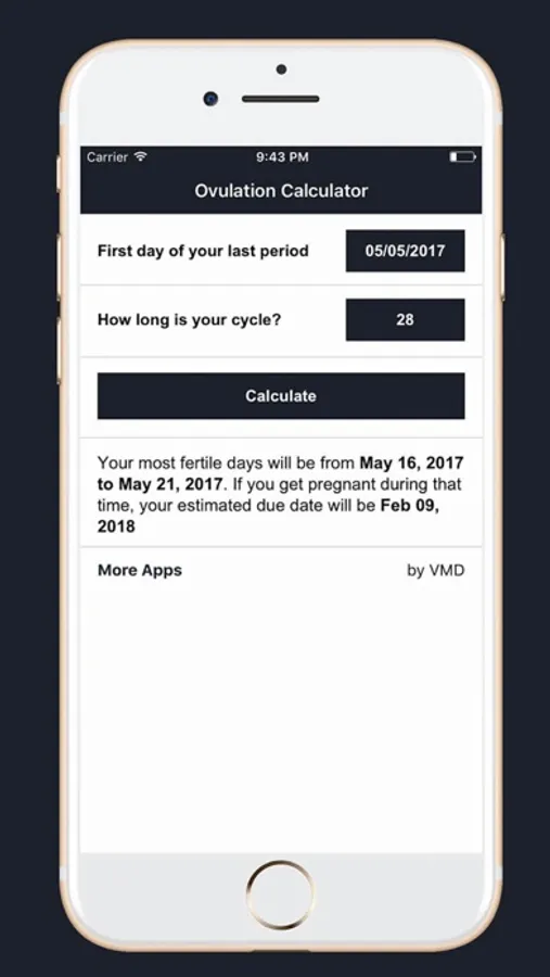 Once values are in place, press the calculate button and let the Ovulation Calculator app do the math.