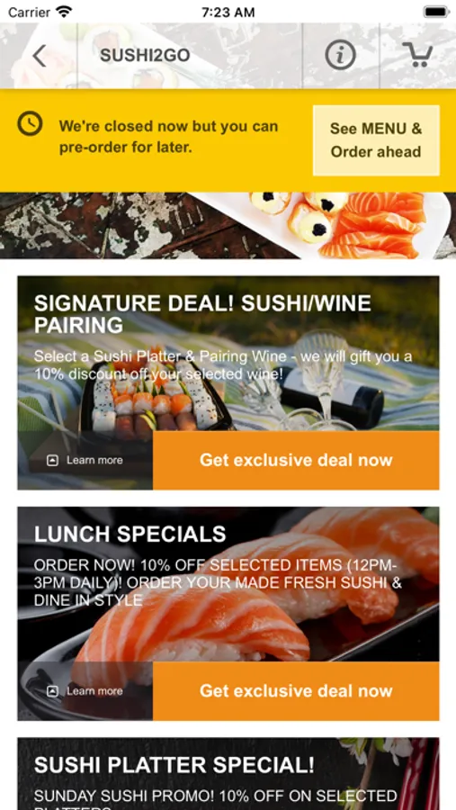 At SUSHI2GO we offer a superlative service and menu that will satisfy all your expectations.