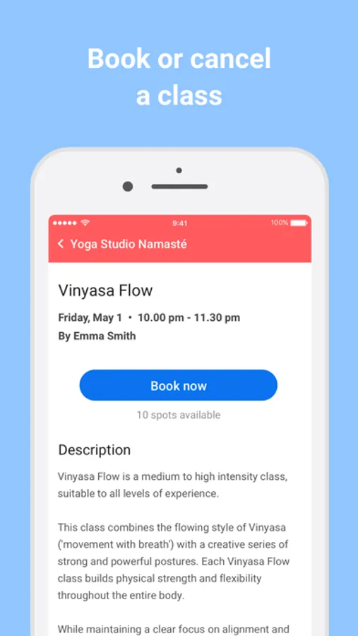 With the Momoyoga App (for yogis) you can easily make a reservation or cancel a class.