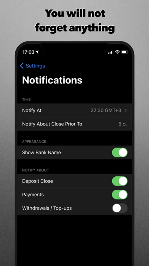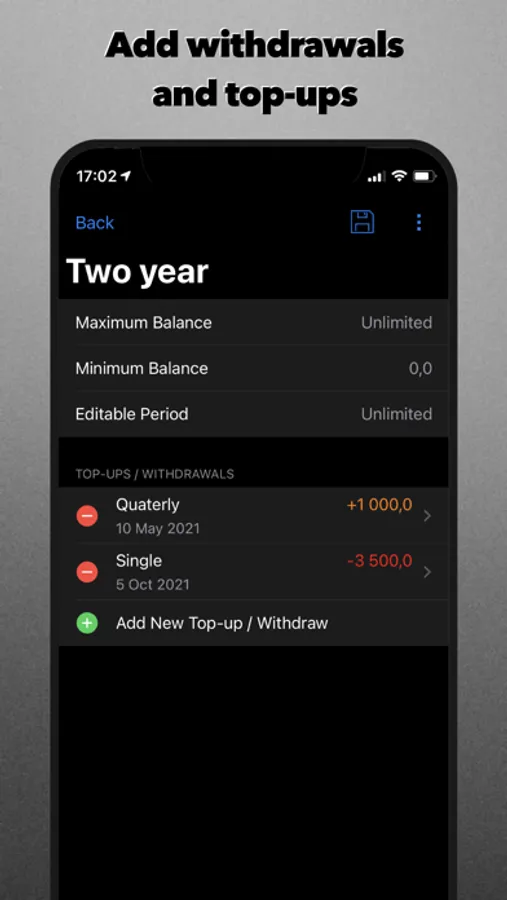 - Saving of your personal deposits (unlimited number with the premium subscription)