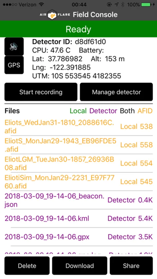 AirFlare Field Console is a critical component of AirFlare search technology used by Search and Rescue to support ground and air (drone-enabled) searches. Field Console enables complete remote operation of the AirFlare Detector, including search subject configuration, starting and stopping searches, GPS location tracking and sharing, notification of successful detection of a lost adventurer’s phone, search result file management and viewing, and transfer of search results for further inspection and analysis in GIS software.