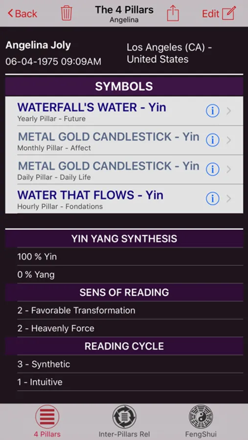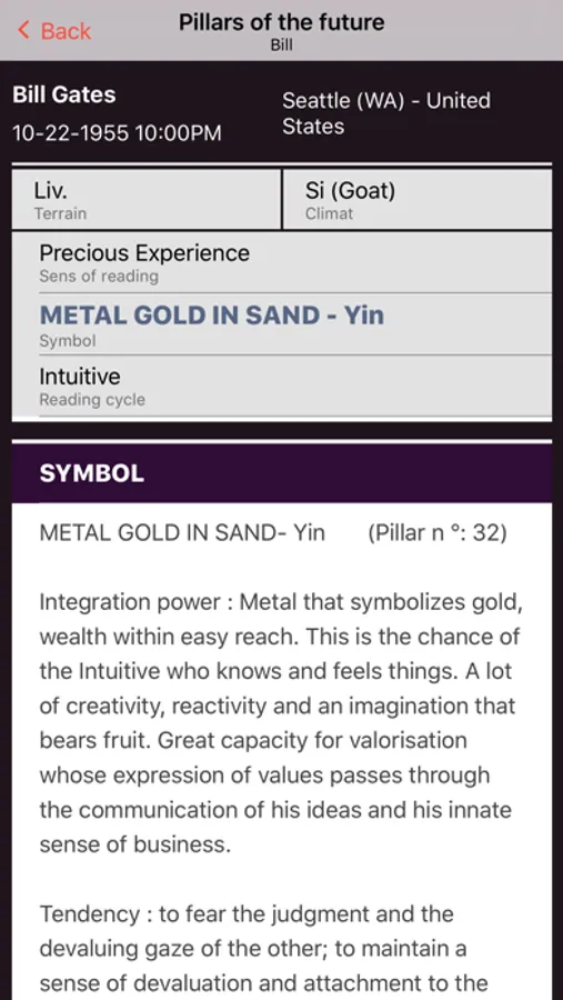 The application makes it possible to calculate, according to the date of birth, the 4 Pillars of Destiny and to access a detailed analysis of its foundations, its potential, its tendencies, and its future.
