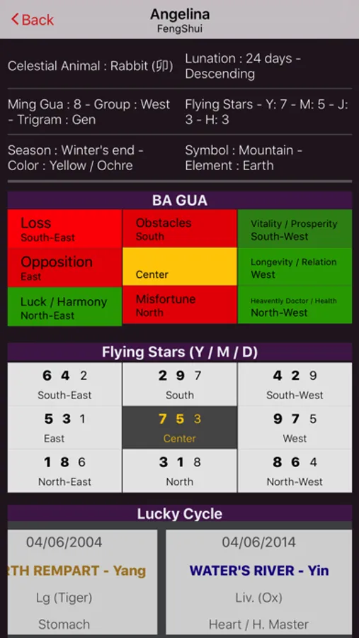 The Calculation of the Yearly, Monthly and Daily Pillars is free. Access to relational studies, the calculation of the Hourly Pillar, detailed analyzes and Feng-Shui data are available as part of a paid offer.