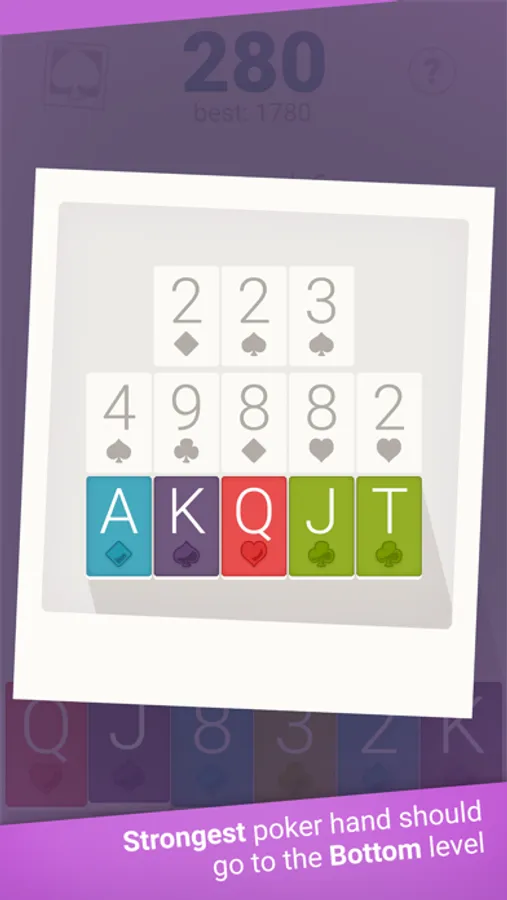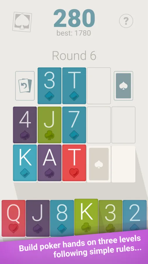 Every round you need to build 3 poker hands so that weaker poker hands are placed on top of stronger ones. With 6 cards to choose from, you have plenty of interesting options every turn. Unused cards persist between rounds so every choice matters!