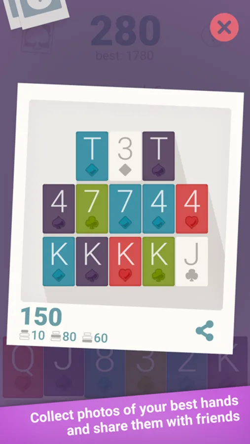 Get lucky and score tons of points for stronger combinations on higher levels, or fight for survival with bare pairs. It wouldn't be a poker game without luck involved!