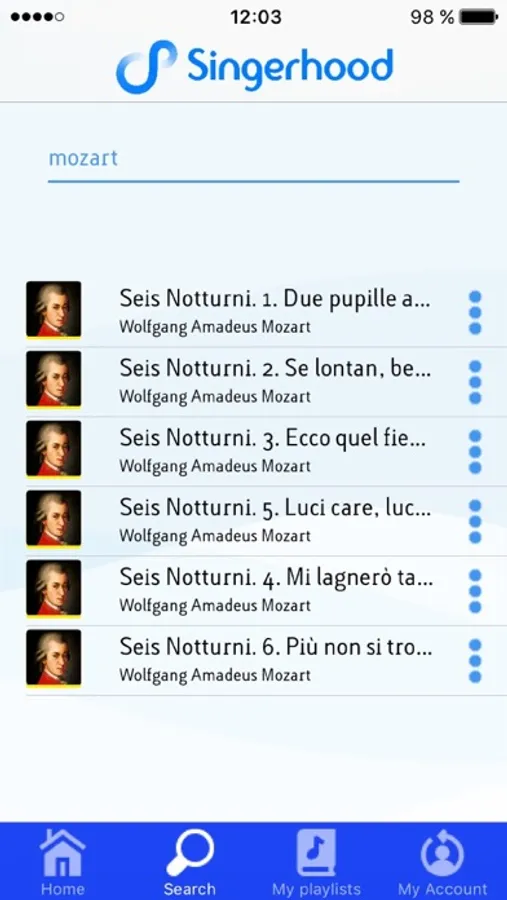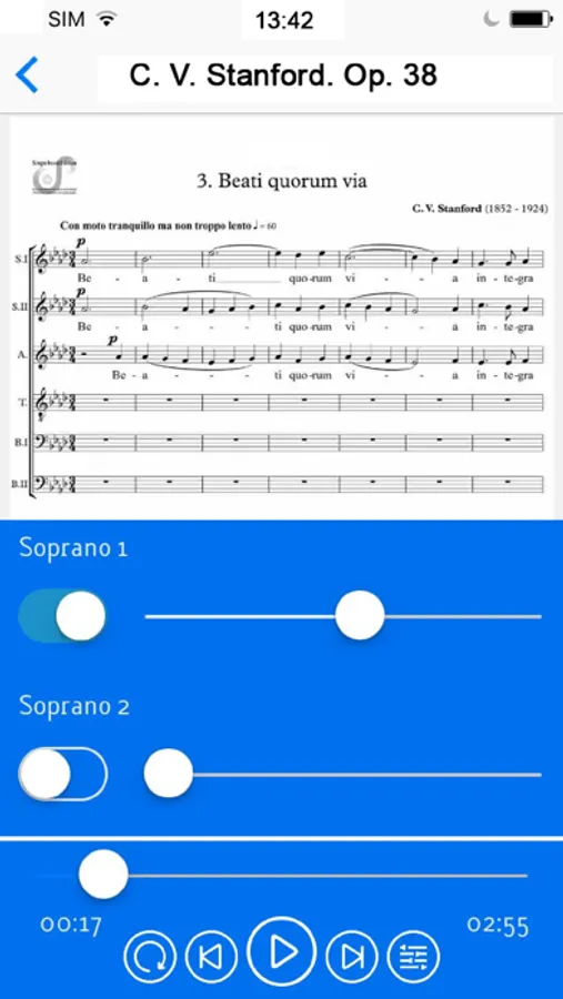 You will learn to sing in a choir. Forget about MIDI files. Just choose the choral voice you want to learn (soprano, alto, tenor, bass or other) and rehearsal anywhere the separate voices, sung by real singers. You can listen the song again until you learn it, and you can also follow the score within the app.