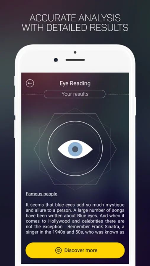 With Eye Reader you can find out more about your personality and character and what to expect in future. Be more confident when making important business decisions and know your strong and weak points.