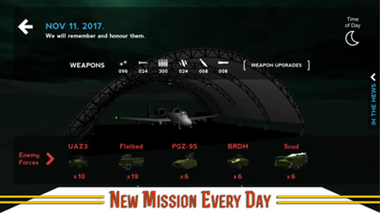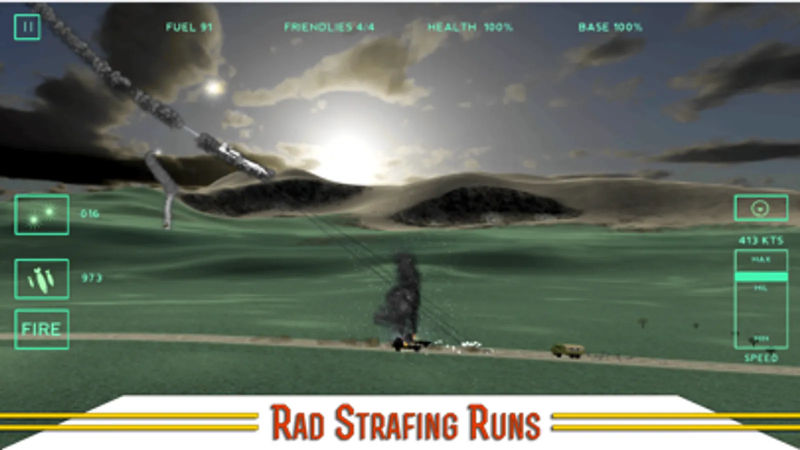 It's WAR! Terrorists are using captured Russian and Chinese military hardware to attack a FOB (forward operating base) and patrolling friendly forces in Northern Syria. Pilot one of 6 iconic attack planes in an epic battle. Strafe convoys, launch Hydra rockets at ACP's and drop unguided bombs as the enemy advances on friendly positions. Save all the friendlies. Save your base. Be the best attack pilot today and be a HERO!