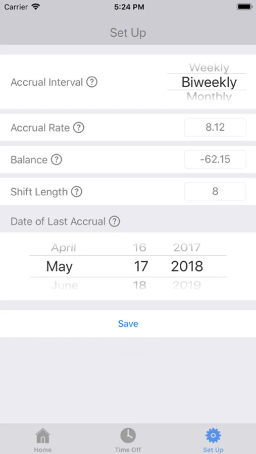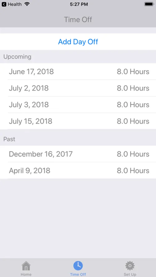 This app can be used to track your time off balance and plan your future vacation days. You can track your past and future days off so you can see your time off balance for a date in the future.