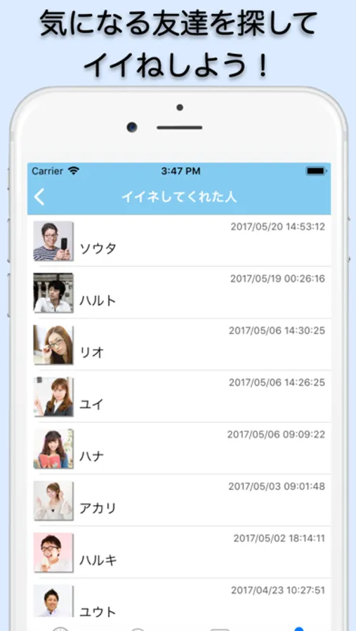 マイページでは、イイネをした人とされた人の一覧を見ることが可能です。
