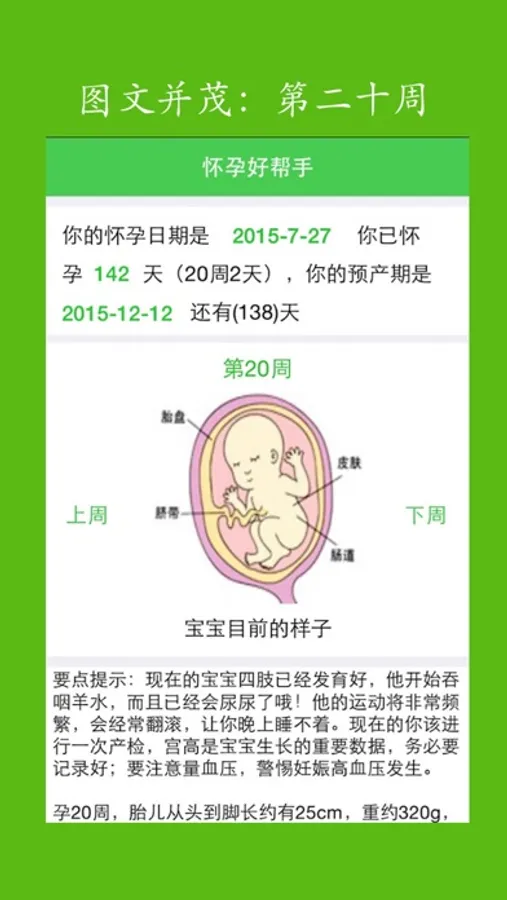 胎儿发育每天提醒,让你时刻知道腹中宝宝的发育状态。