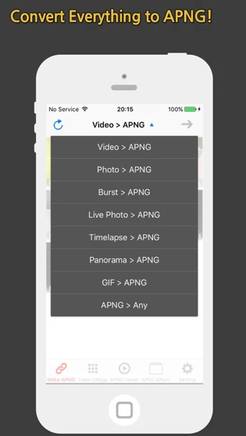 You can convert photo, video, burst photos and live photos to APNG easily.
