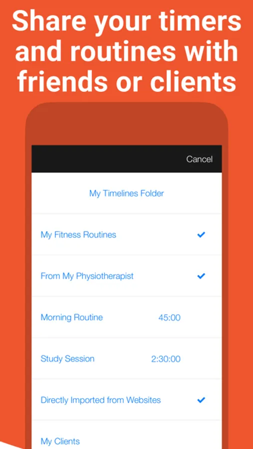 Share any number of timers and folders at once with your friends or clients. You can also publish them on your website so your audience can directly open them in the Timeline app.