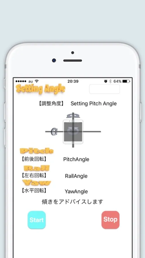 iPhone本体の傾きを感知して傾きを表示します。