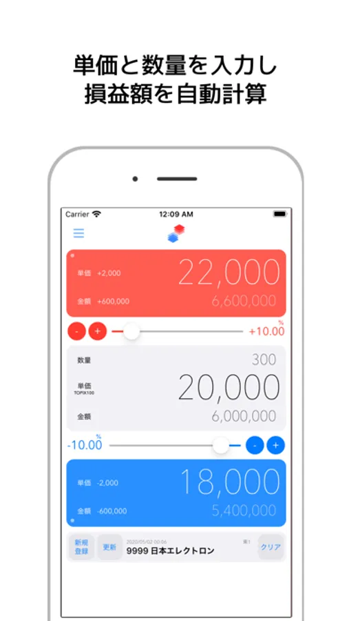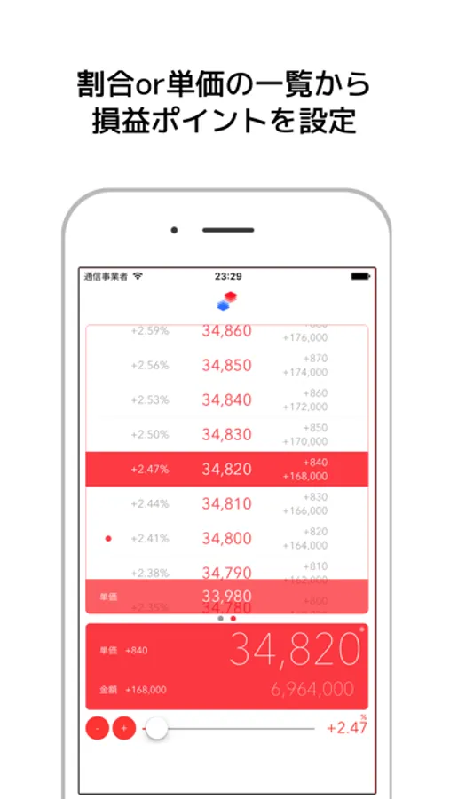 また、損益額エリアをタップすることにより、値一覧から選択することも可能です。