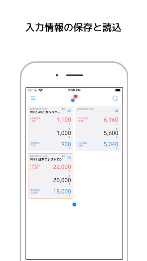 保存機能により、入力情報を保存するし、再度読み込むことが可能です。