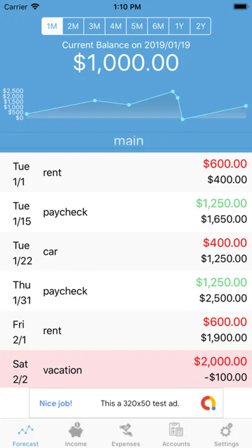 Forecast your paychecks and payments into the future by giving yourself long-term vision out over days, weeks or months.