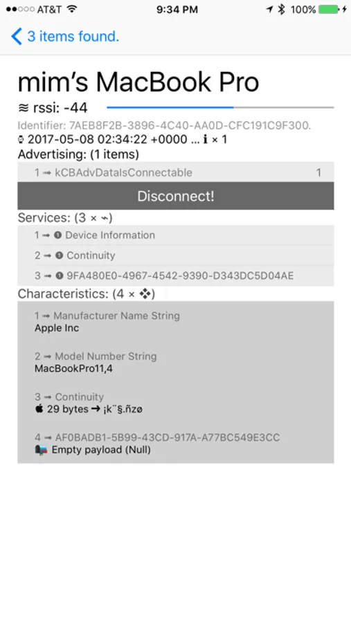 You can also read common information like the device name, its signal strength ( that correlates to its distance ) etc.