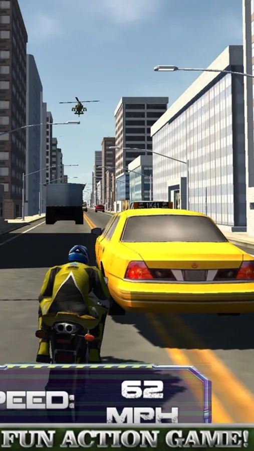 Escape helicoper on city road with your amazing super bike in Motor Prison Break: City Running