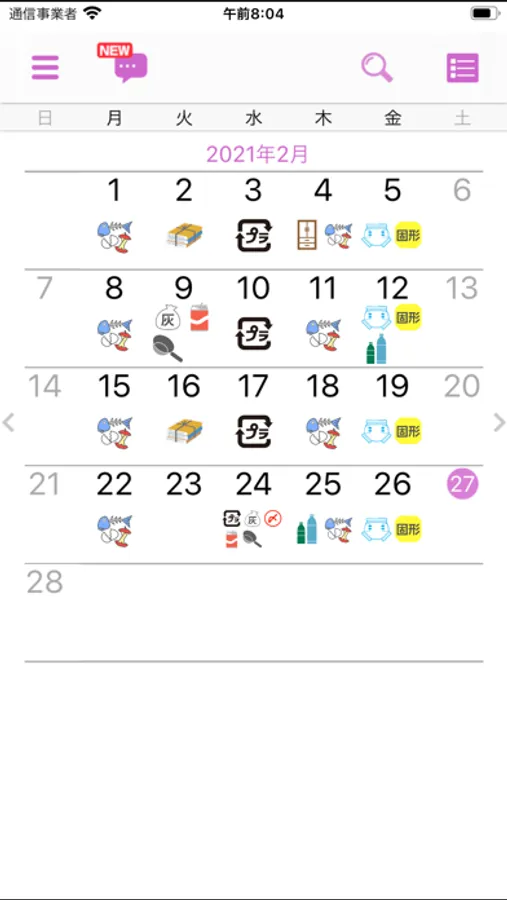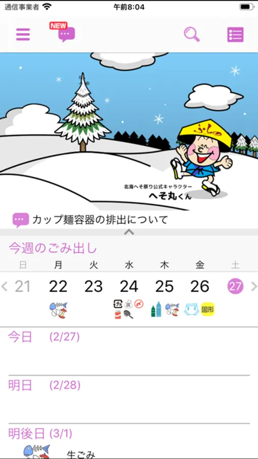 収集日変更のお知らせやイベント情報などを確認することができます。