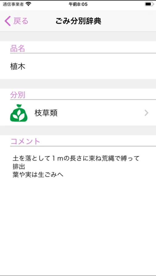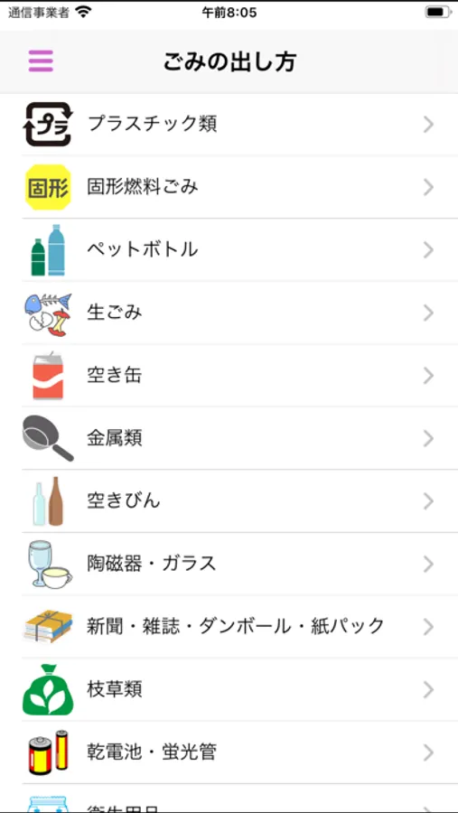ごみの種別ごとに、主な品目と出し方を確認することができます。