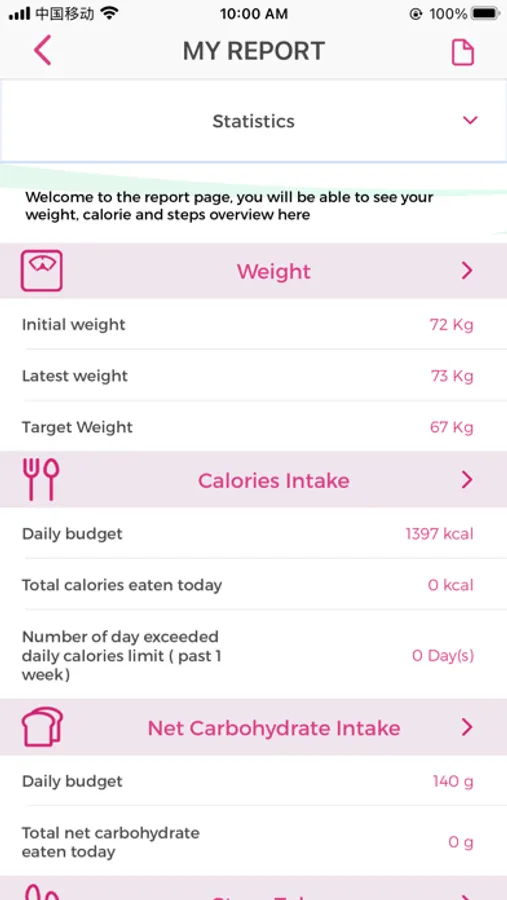 - It will track your calorie, carbohydrate and sugar intake and provide a daily meal report as well as total nutrient analysis so that you know if your nutrients intake is within requirements.