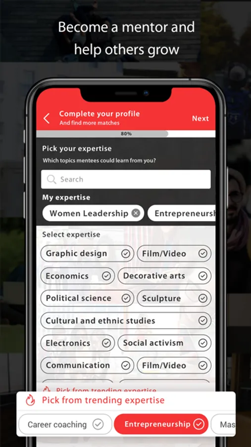 MATCH: Find mentors and get chosen as a mentor based on expertise, interests and values.
