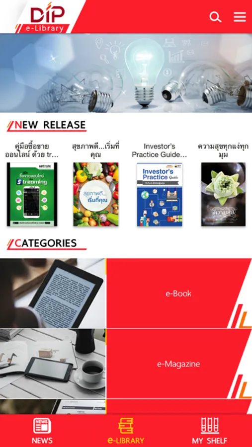 DIP e-Library ห้องสมุดดิจิทัล กรมทรัพย์สินทางปัญญา แหล่งความรู้ที่เกี่ยวกับด้านทรัพย์สินทางปัญญา e-book e-magazine บริการตลอด 24 ชม. สะดวกรวดเร็วเพียงปลายนิ้วสัมผัส