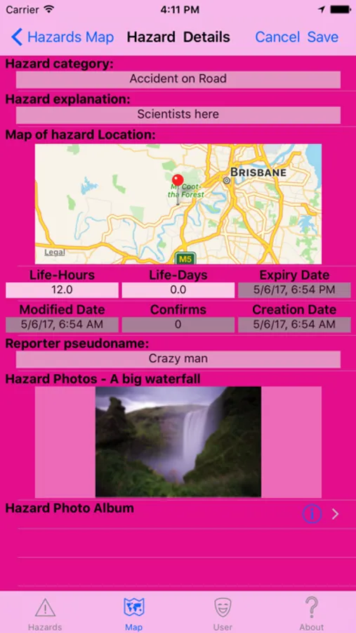 This application provides alerts to users about Road Hazards before they encounter the hazard.