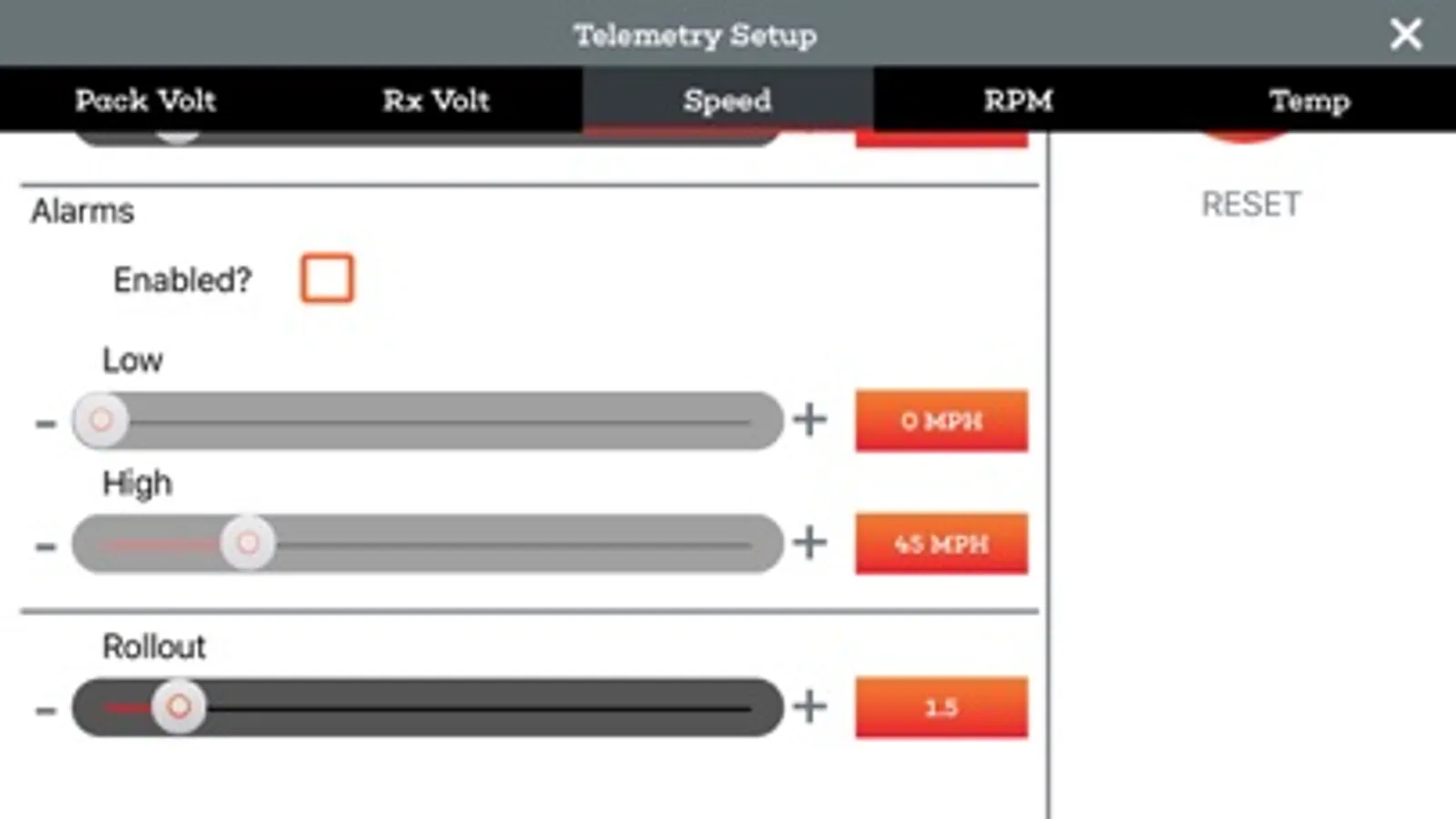 Simply install the Spektrum Bluetooth module with your Spektrum DX3 Smart or DX2E Active transmitter and view real-time telemetry data like never before. You can also manage individual settings for RPM, temp, rx voltage and more with the options of setting alarms to indicate low voltage, high motor temperature, RPM limits and more.
