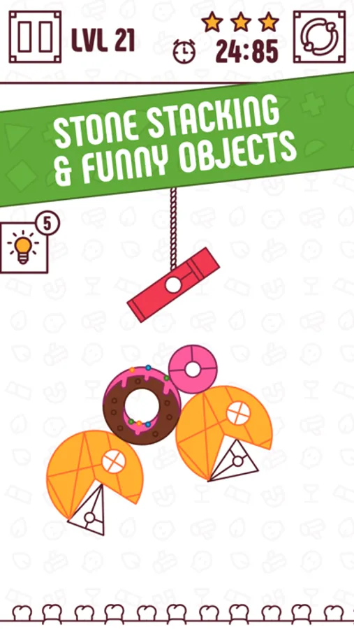 Stones, boxes, bananas - whatever you can imagine. Place all the stuff to make a steady tower and have fun finding the balance. Think over, drag and rotate elements, cut the rope with double tap and drop objects gently.