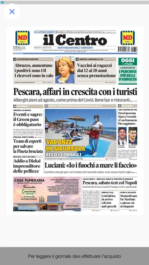 Puoi scegliere l’edizione del giorno, o un’edizione dell’archivio, e consultare gratuitamente la prima pagina o acquistare l'edizione completa. Sfogliando le pagine del quotidiano, ingrandendo i contenuti, ruotando il dispositivo, sarai libero di leggere in piena comodità e nella modalità preferita.