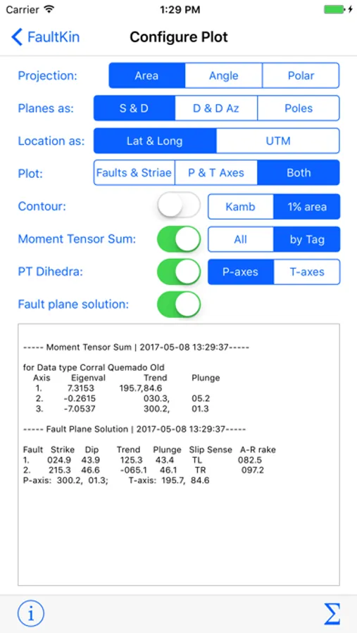 - Plot P and T axes, (unweighted) moment tensor axes, P-T dihedra, fault plane solutions, and contour P and T axes.